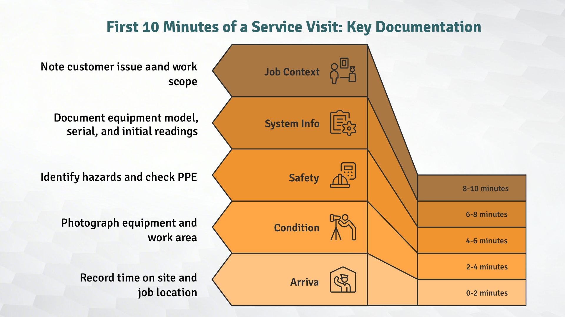 Documentation in field services means creating an organized, traceable record of what was done, who did it, when it happened, and how it was handled.
